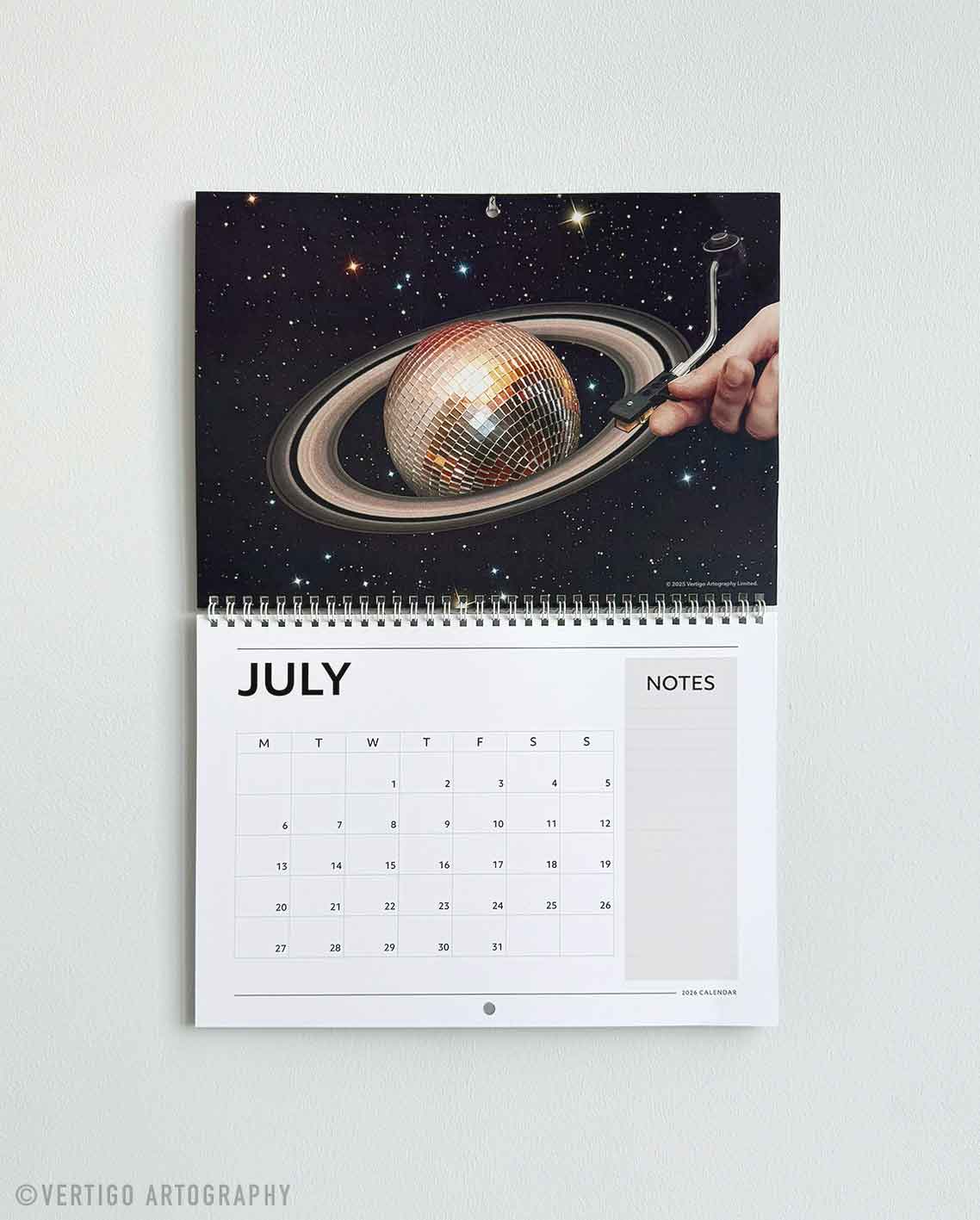 Bring creativity, colour and meaning into your year with the 2026 Collage Art Wall Calendar by Vertigo Artography, a premium A3 (when opened fully - artwork and month dates) 2026 calendar designed for those who want more than just a date tracker. Featuring 12 original surreal collage artworks, each month has been carefully curated to reflect the season, mood, atmosphere and energy of the year ahead.